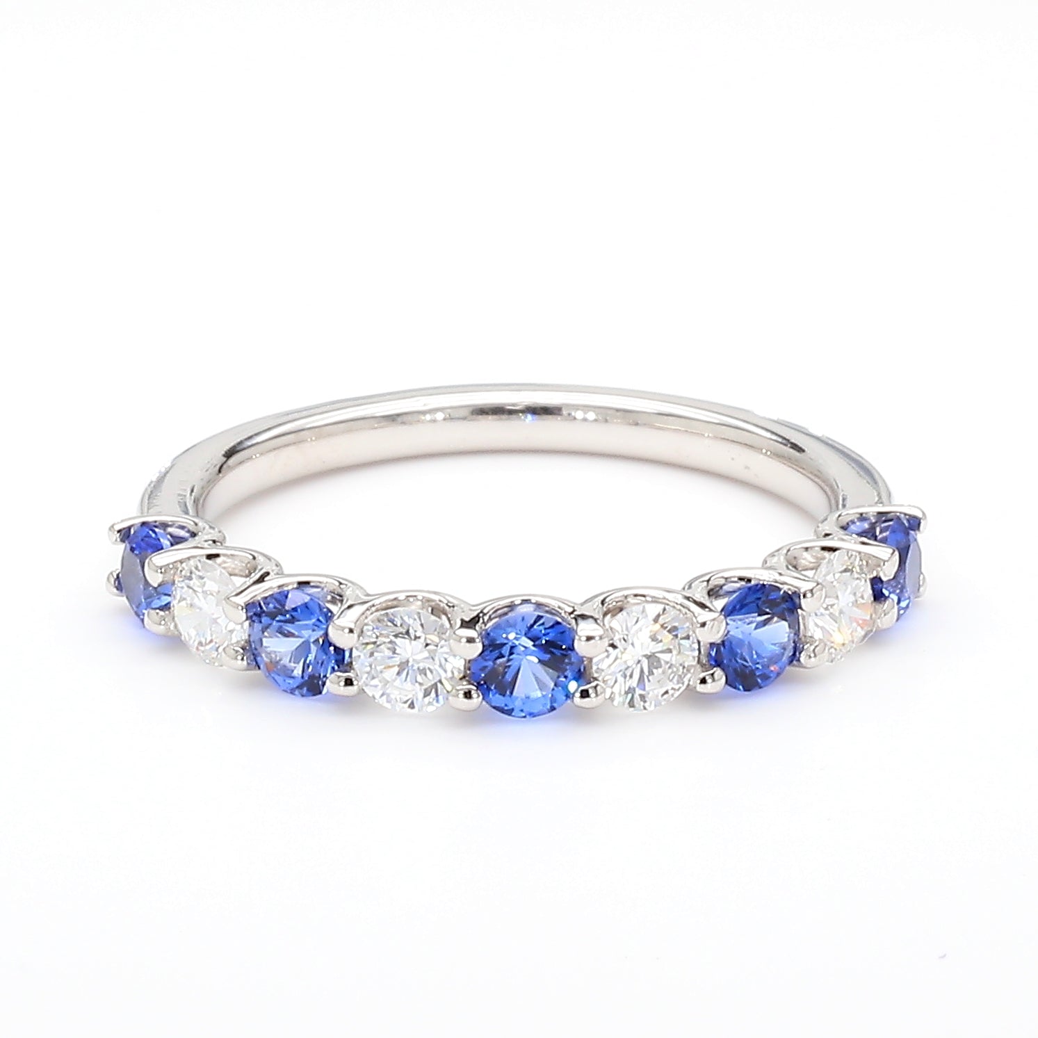 Lab Grown Sapphire Wedding Band 14k WG 1cttw 9-Stone