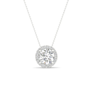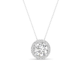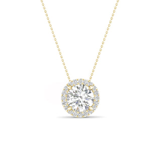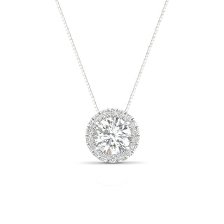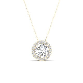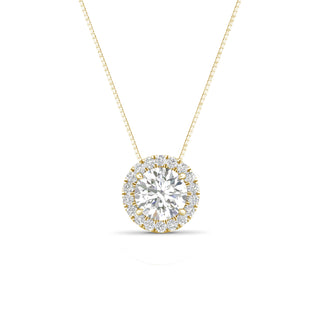 1 1/6 Carat T.W. Round-cut Lab Grown Diamond ( G-H/VS ) 14K Gold Halo Pendant with Box Chain